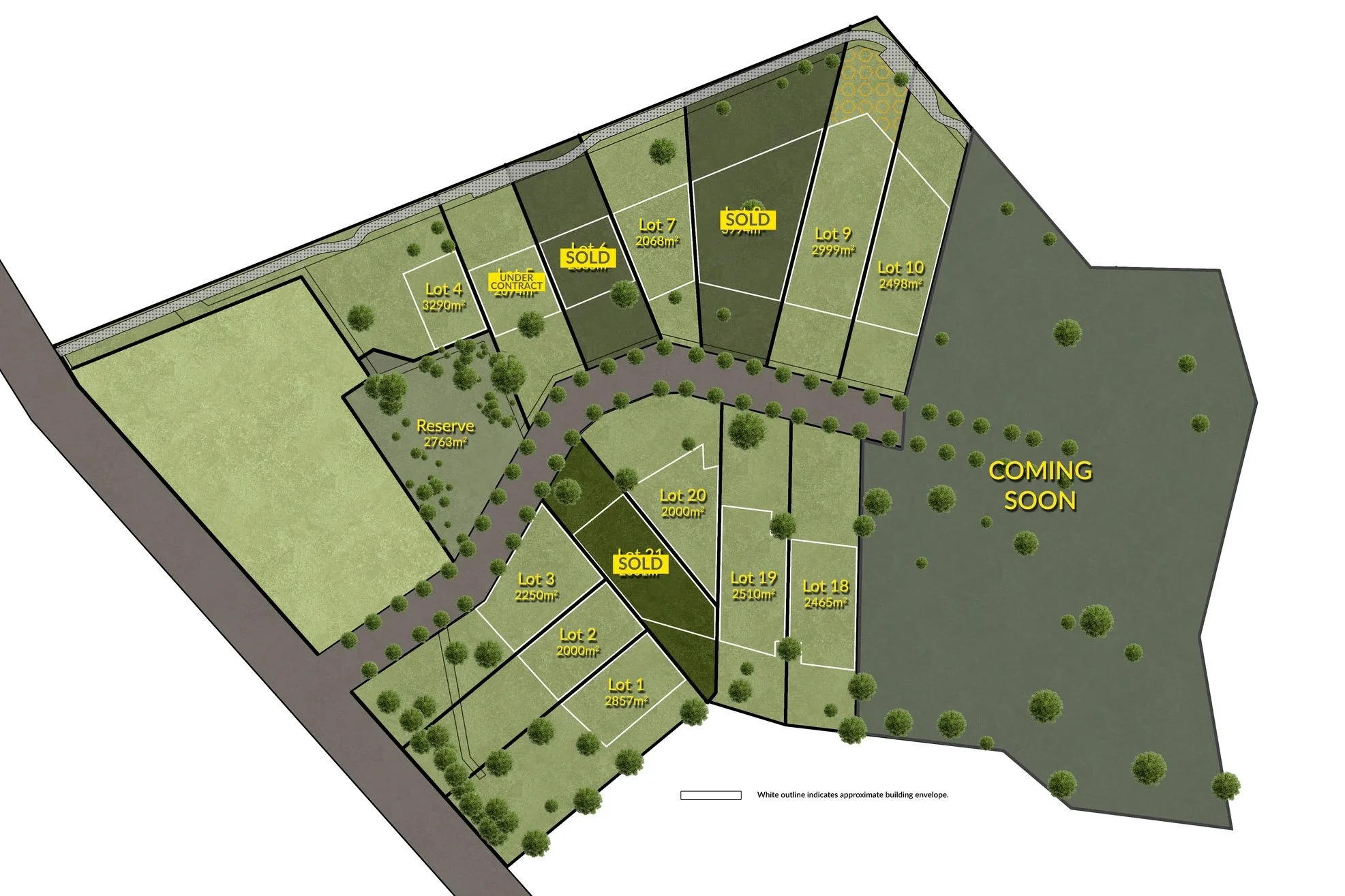 | Lot No. | Lot Size (m2) | Habitable Building Envelope Size (m2) | Non Habitable Building Envelope Size (m2) | Price |